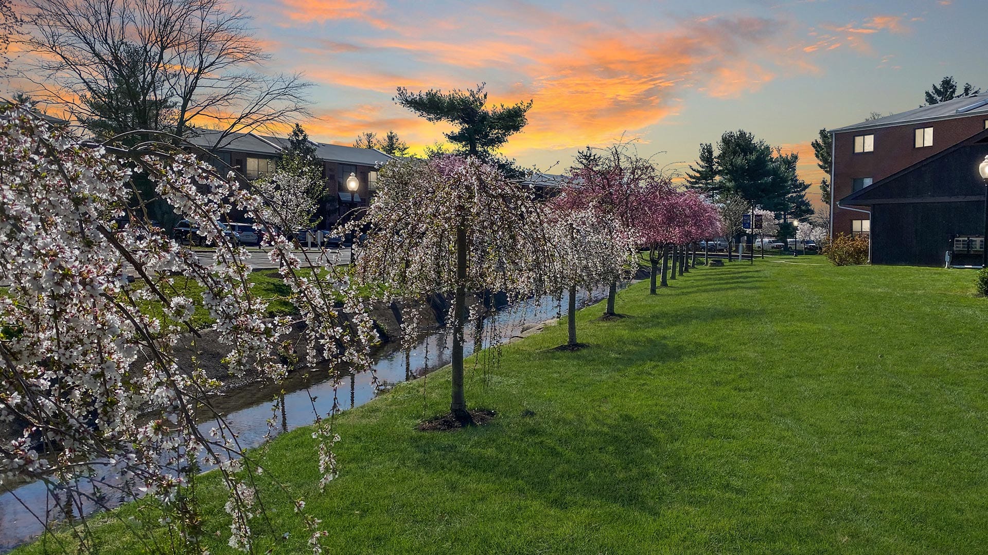 The Ambassador II Apartments is breathtaking year-round, but particularly beautiful in the Spring. Hundreds of flowers are planted at the Ambassador Apartments each year creating a rainbow of colors. Flowers including tulips, daffodils, irises and hyacinths, which welcome residents each Spring. The flowers begin to blossom in April, and continue through the Fall. In addition to the many flower blossoms, there are cherry trees, dogwood trees and azalea bushes that blossom in early May. Purples, red and white azaleas fight for attention against the pink and white blossoms of the dogwood trees. This is a competition that everyone loves.