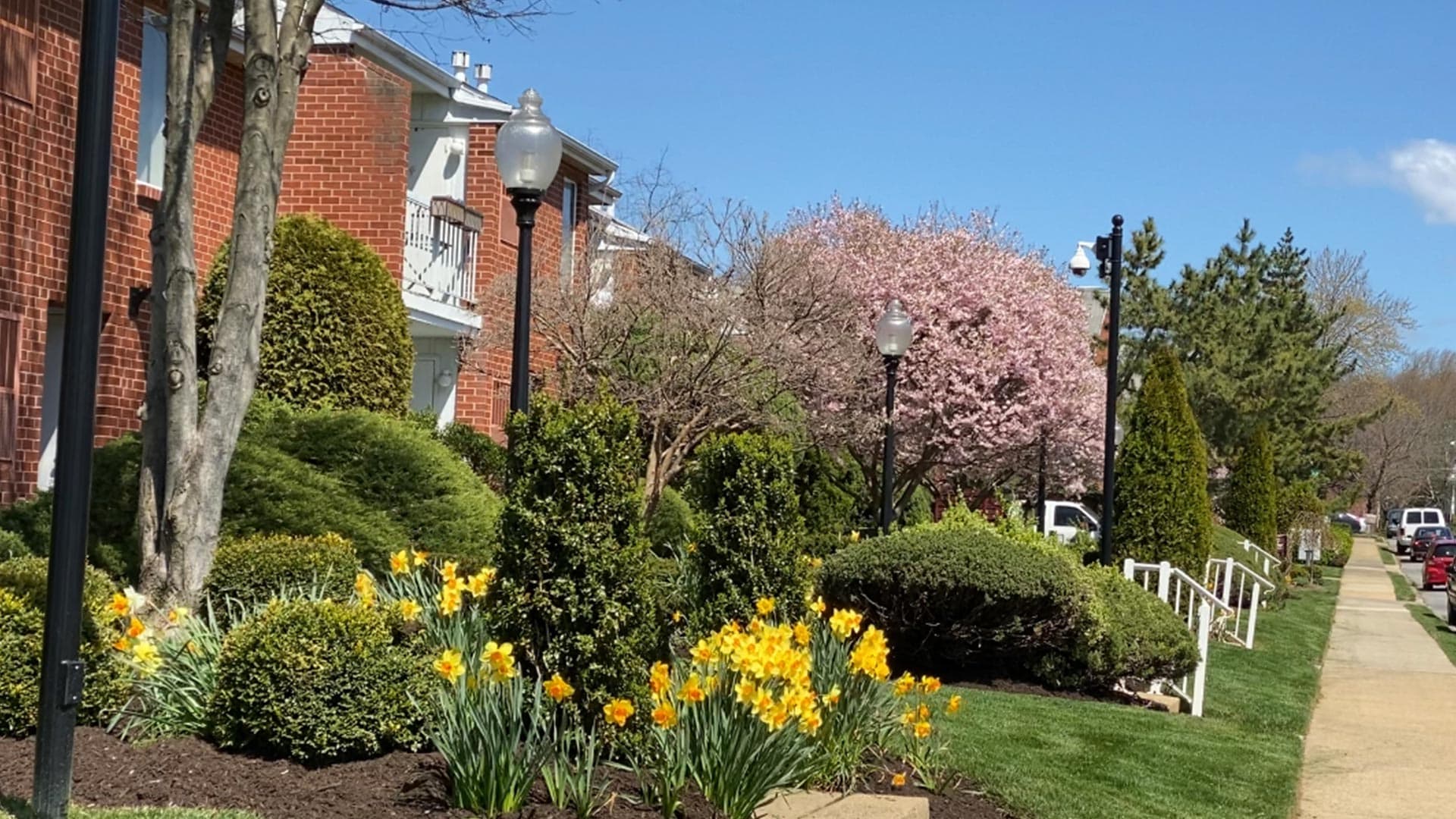 All of the seasons are beautiful at Park Place One Apartments, but the community is particularly beautiful in the Spring. Thousands of flowers are planted at the Park Place One Apartments each year creating a rainbow of colors. Flowers including tulips, daffodils, irises and hyacinths welcome residents each Spring. The flowers begin to blossom in April, and continue through the fall. In addition to the many flower blossoms, there are cherry trees, dogwood trees and azalea bushes that blossom in early May. Purples, red and white azaleas fight for attention against the pink and white blossoms of the dogwood trees. The color palette is truly magnificent and a dazzling display. In front of each building and walkway, irises bloom. From the moment you arrive to Park Place One Apartments in the Spring, you can see the beauty of the community as even the sign outside the entrance of community is surrounded by beds of flowers. As one resident so eloquently described the Spring Scenery at Park Place One Apartments, “Oh my goodness it is absolutely beautiful. I’ve taken Pictures and sent them to my family, they can’t get over it…”.