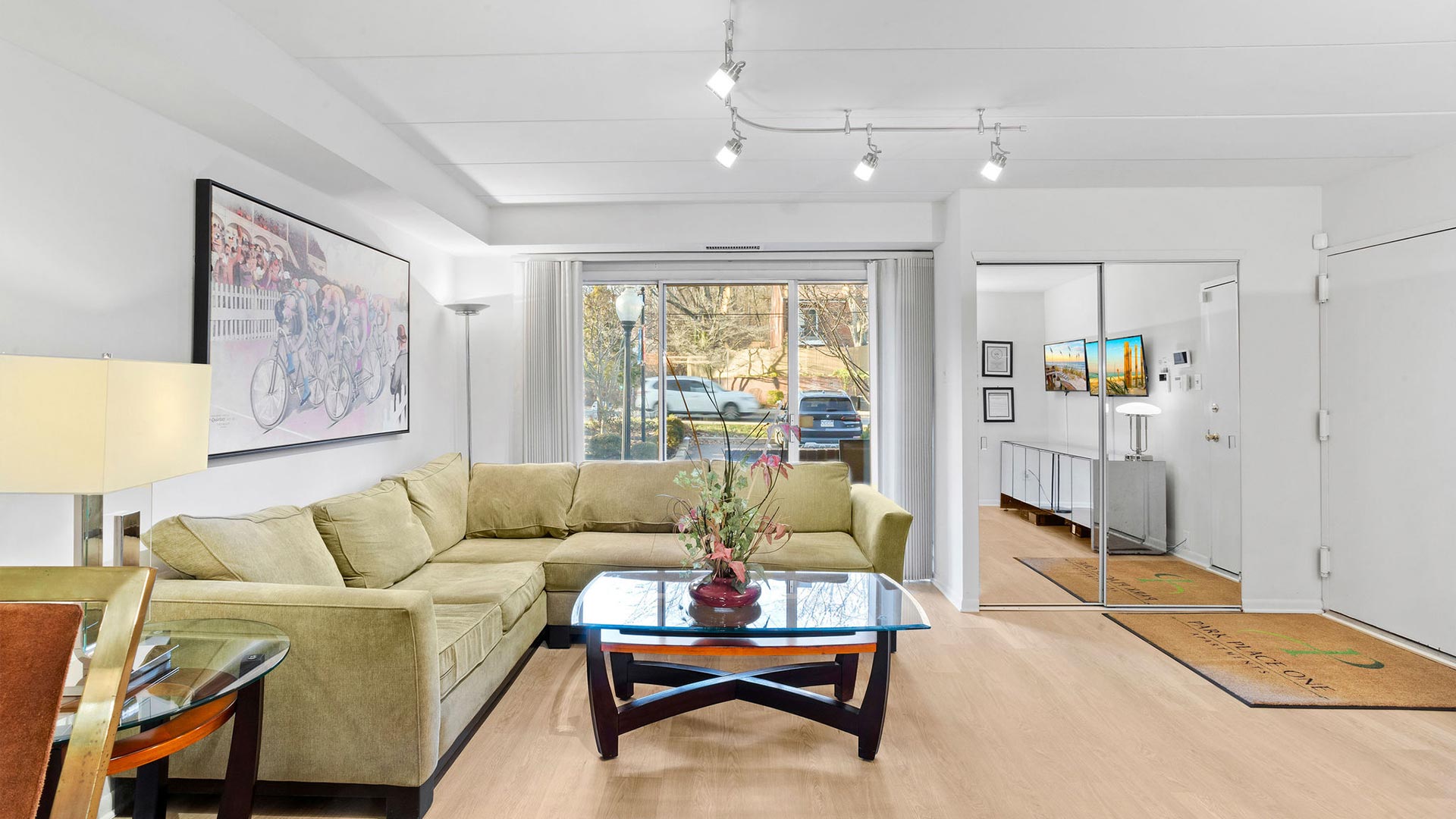 The residents refer to their apartments as homes and that is by design. Every effort was made in the original design to incorporate the best of single-family home features into that of an apartment. Therefore you can choose either a private entrance (whether you live on the first or second floor), or the company of a few neighbors by selecting an apartment that shares a common hallway with three other residents. Many of the apartments are nearly barrier-free with only one step to navigate between the sidewalk and the apartment front door.